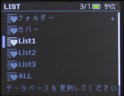 追加するフォルダ/ トラックを選択したら、センターボタンを長押しします。リスト1/ リスト2/リスト3 に追加という項目から希望のリストを選択しセンターボタンを押します。